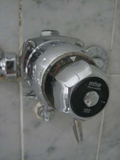 One very cool feature is the shower control. It’s separate from the bath control and it consists of two parts. A dial to set flow and a lever to set temperature. You can set the temperature wherever you want it, and it stays there forever, or until you change it. Very neat, no fiddling with settings ever again.