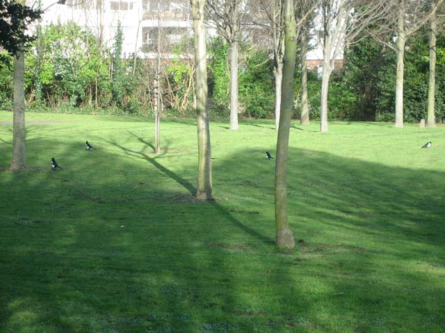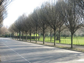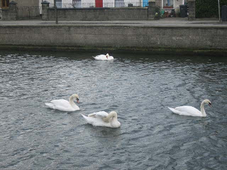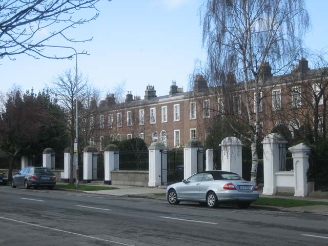 Finishing up there, I went out and headed south, wanting to explore some of the neighborhoods I had seen back on Wednesday when I was lost on the commute. Rows and rows of beautiful Georgian-era brick town houses spiced up with flowerings bushes and brightly painted doors. I walked past Herbert Park and saw a troop of Magpies working over the grass. A couple of homeless people were sunning themselves in a park shelter. Rounding the block I stumbled upon the Embassy of the United States, a rather unattractive round modern concrete edifice. A stylized metal eagle graced the west side.