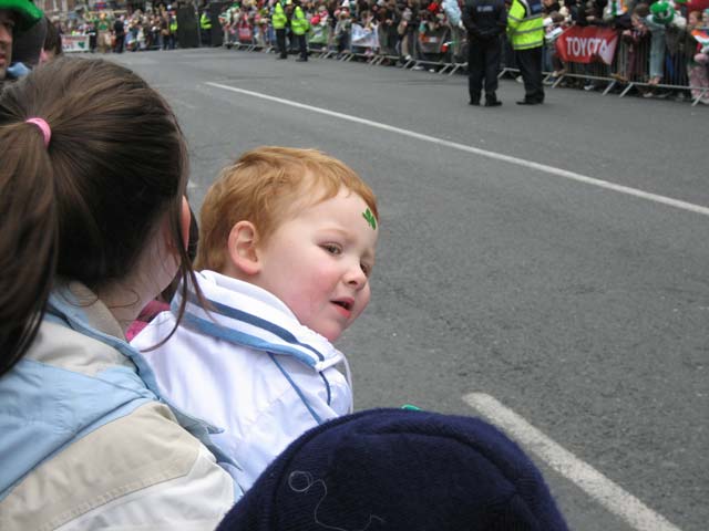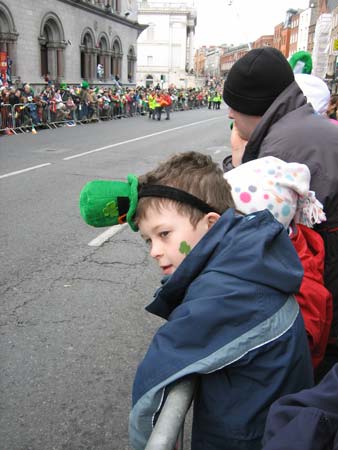 I was having some misgivings about staying through the weekend for the St. Patrick’s Day festivities. For one thing, I couldn’t find a single local person who had been or intended to go. On top of that, the predictions of one-half million people made it sound like most of the activities would be inaccessible, in particular the parade. And the capper was the report on the news that more than 300,000 people had passed through Dublin Airport on Friday. But I stayed on and lay in bed an extra hour on Saturday, figuring I’d just muddle through.