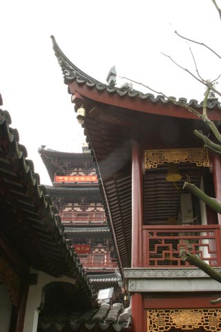 There were many buildings and many Buddhas. Like the Chinese I elected to stop and do the prayer ritual in front of each one, an act that inspired some surprise and affiliation among the other supplicants. It’s simply a nice thing to do. Guests rubbed the heads of two bronze lions outside the main temple, leaving bright, shiny patches on body otherwise covered with verdigris. Many stood around throwing coins in the air hoping that they would land on the roofs of the buildings, ensuring that their prayers would be answered.