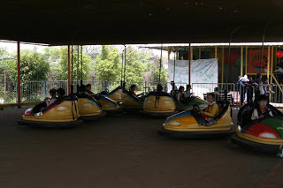 The place was loaded with school kids, bussed in for the day to ride the bumper cars and to buy these giant inflatable Paul Bunyan hammers that the boys were busy beating each other over the head with. It was odd to see such a throng of uniform wearing, back pack toting 48 inch tall little people marching and yammering and having a great time. There must have been a thousand.