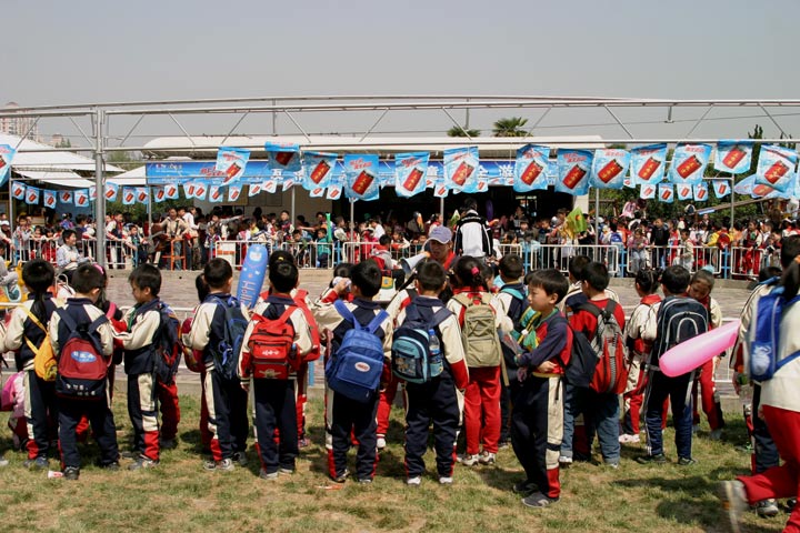 A line of perhaps second graders walked by us and said “hello”, “goodbye” and added “zai jian” when I responded in Chinese. They were laughing and giggling and having a great time at our expense.