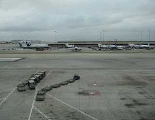 So down the stairs and out onto the dreary runway I went to catch the bus. Today though was a bit different – they must have been working on commission because they kept filling and filling the bus until there was no room left, sitting or standing. Which is odd, because each and every one of us can afford the 5 minute wait for the bus to come back given our 3 hour layovers. This time though – no wait, just a crushing mob.