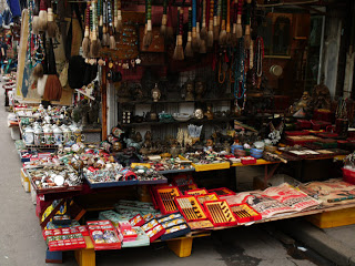From there, across the street to the antiquities market where one can find all sorts of oddball antiques, both old and brand new. It’s a couple of blocks of small streets lined with booths. Some specialize in Buddhist art, others in old fans and telephones. A real hodgepodge and pretty low key in terms of low pressure salesmanship. Most have no English aside from the odd gaggle of little school girls who delight in walking by with their grandmother escort and yelling a giggly “hello” at us.