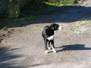 We took a detour on a country lane to see if we could get closer to some castle ruins up on a hill. It turned out to be on private property, guarded by two ferocious black and white border collies who came charging and yapping down the long drive, only to melt into a puddle at my feet when they realized I was only there to scratch behind their ears. From their drive, the valley spread out bounded by some rolling green hills, the closest capped by our unattainable ruins. From here, you could see the peat smoke drifting across the fields.