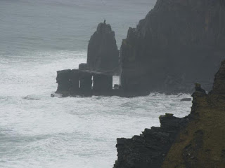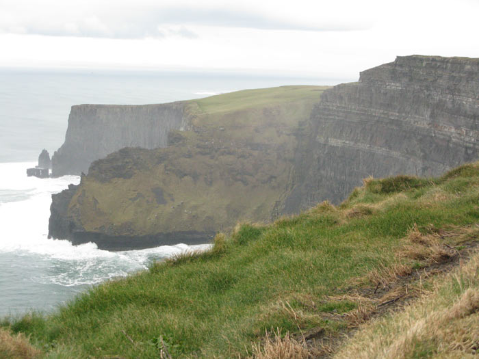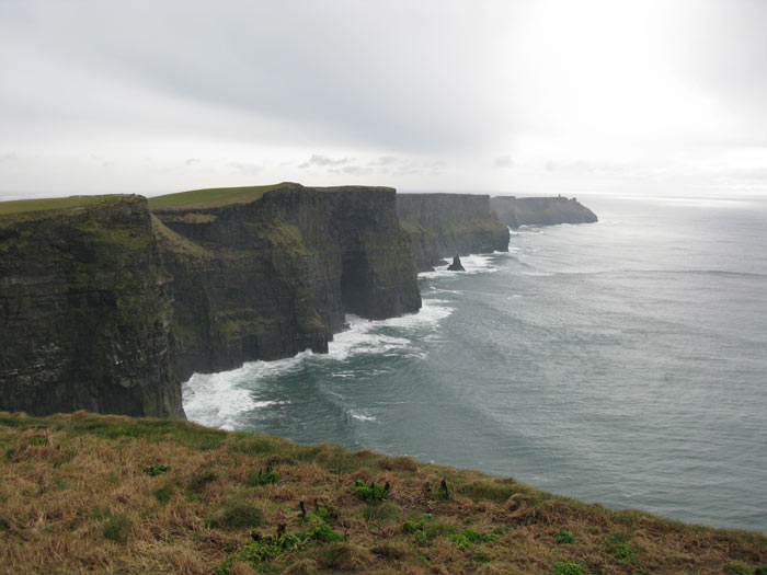 We walked up and around, peering over the cliffs. The walks were composed of Liscannor limestone, a rock popular for its durability and the fossilized sea creatures covering its surface. It was a nice bit of environmental design. Sea birds wheeled about the faces of the cliffs. I stopped to talk to a birdwatching and chatted about the gulls, Kittiwakes and Fulmars easily spotted. No Puffins, sadly.