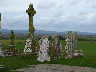 These shots show some of the interesting elements of the site. The graveyard had headstones spanning from the mid 1600s to the present and the view of the green expanse of the Golden Vale from the hill was spectacular. The big rock below shows what happens with the corner of a castle falls off – it makes a dent in the ground and lies there, just as it fell. In this case, the parapet was blown off in a wind storm in the early 1900s. The cathedral has seen restoration limited to stabilization, and lots of the beautiful parts are still intact, soaring to the heavens just as they did when built in the 13th century. The round tower is one of the best in Ireland and is built in the “dry stone” style, which is to say with shaped rocks and no mortar. The entrance is about 12 feet above the ground, allowing the monks to remain safely ensconced until the Vikings got bored and wandered off to pillage something else.