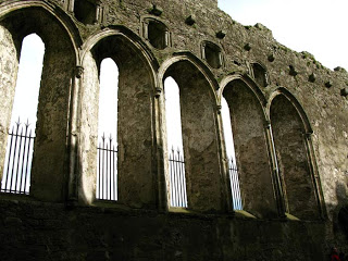 Coming back around for the second pass we dropped the car in a car park and decided the easiest approach was on foot, just like the itinerant pilgrims used to do. Availing ourselves of a friendly woman in the local Tourism Office, we gained directions and walked up the hill through some tidy little neighborhoods and passed the Bishop’s second church. The fortress loomed above while blindingly green meadows, naturalized with daffodils spread out below. Off to the west stood the ruins of Hore Abbey, our next destination.
