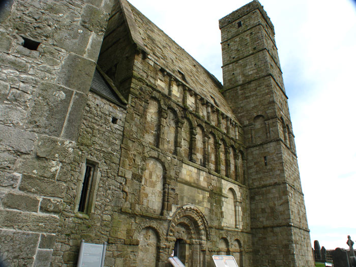 The most significant structure on the site is the Cormac’s Chapel, built around 1100 AD. It’s sandstone as opposed to the more common limestone indicating that it was hauled into place in pieces from a distance of about 90 miles away. It’s on of the finest examples of this style of architecture due to the detail work and the carvings, unique in Ireland and more commonly found on mainland Europe. It is said that a wealthy Archbishop from Germany sent his personal carpenters to oversee the construction, which explains it’s uniqueness in these parts. It is quite amazing from the strange hippo carved over the door to the finely wrought Celtic tomb inside. Interestingly it was founded by one Cormac McCarthy.