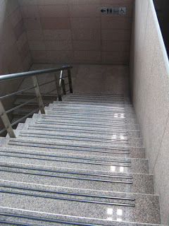 I was really avoiding using the rest room until I really had to, prior to leaving. It’s not that they’re bad, on the contrary, they are kept spotless by an attendant that lives in there. Rather, the design of the airport somehow missed a beat and they are located down a trecherous flight of marble stairs in a little basement. You can imagine dragging your carry-on up and down these.