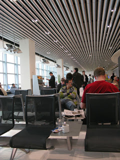Off to security, which is light on domestic flights, perhaps explaining the recent ban on any chemicals in baggies instituted after some Muslims attempted to take over a plane last month. I cleared that and voila – peace, quiet and clean air.