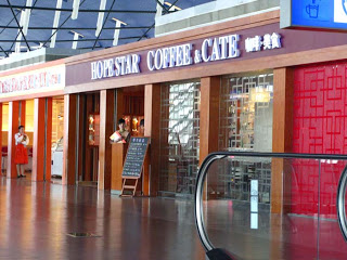 I wandered around for a bit checking out the cafes, as I had nothing better to do. The names are real stumpers, not sure how they translate. Here are three that caught my eye. Do you suppose if you order coffee and pie that Cate Blanchett comes out and welcomes you to her bistro? And The Tuck Shop? I didn’t see any plastic surgeons in there, just cigarettes.