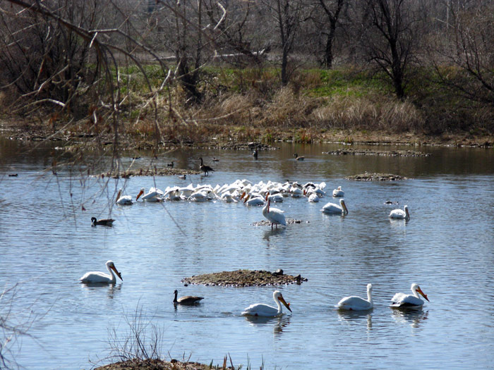 It has really been upgraded in the intervening years and is now less of a weedy area of abandoned quarry ponds than it was back in my day. We took a long loop around checking out the birds, savoring some resplendent Cinnamon Teals and tons of other ducks. Off in the distance, a small kettle of White Pelicans wheeled over some distant lake, making we surprised and reminiscent of the first tme I saw them, some 40 miles to the east at Barr Lake.