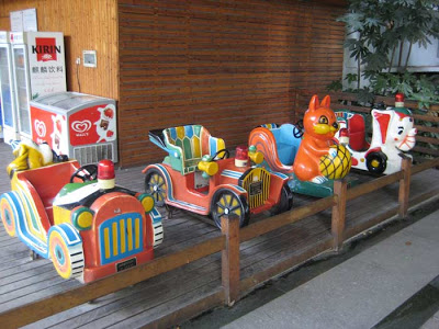 I took this picture of these coin operated rides because they reminded me of those that used to be out in front of the grocery stores of my youth (hmm, that might be an interesting title for a future blog). Except, I suspect these animals are just a bit off center for the tastes of 1960s American children. You’ll notice the beer coolers in the background, something you will never find in an American park.