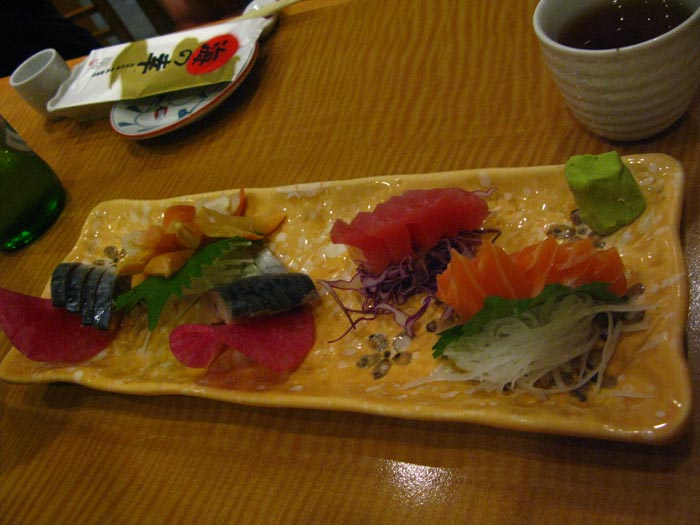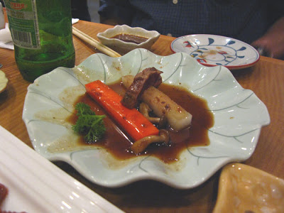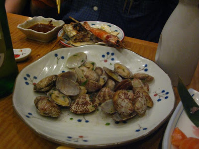 First up Sushi. Every travel site I have visited warns westerners to avoid shellfish, cold dishes and raw items. We being brave, we not only try to cover all three, but we further start the meal with them. Every piece was fantastic, making me appreciate just how woeful the stuff we eat at home is. The Tuna and Salmon melted in your mouth.