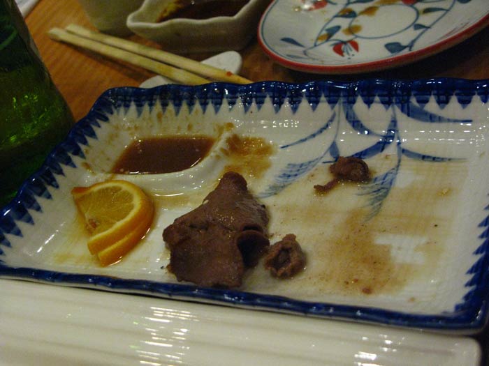Perhaps you might recall a shot I took of the menu in my favorite place in Dalian. One of the dishes was called “chicken bones” and this is it. Little bits of cartilage on a skewer with the tiniest portion of meat on them. You’re supposed to eat the whole thing, but we are trained in the west to work around bones that are not supposed to be there, so there was no way. I just got what meat I could get and respectfully returned the knuckles to my plate.