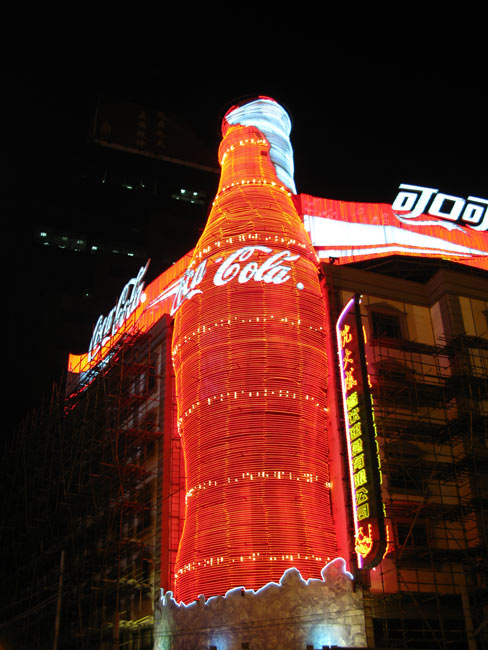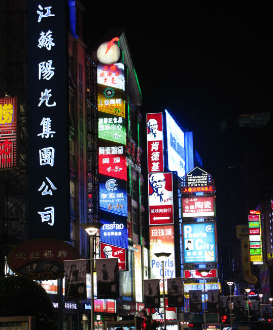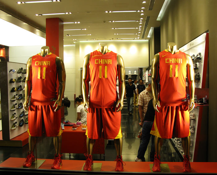 We caught the subway at Fuxing Road and headed off to Nanjing Lu for a pass bay the neon lights. I’ve posted them before, but a couple can bear a repeat. The Nike Store was featuring the uniforms of the Chinese Olympic basketball team.