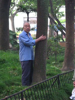 The parks were busy, and I took a few shots here and there of people doing their thing. People out strolling under the trees, a young couple chatting by the side of the pond, old men visiting on the bridge and finally, a tree-hugger to offer incontrovertible evidence that such people do exist. The cats at the end, mill around waiting to see what their people have brought them. I’m sure it’s more than coincidence, but in this park it is common to see the elderly open a bag and wait as a their special feral cat comes out of the bushes for a morning snack.