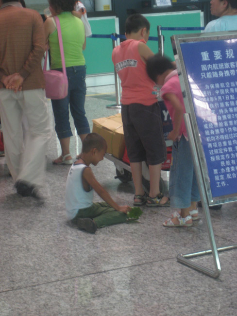 After checking in I went through security and got busted by the wand girl for a 5 kuai coin I had in my change pocket. She was very thorough – untucking and tucking back in my shirt, both front and back. We got out on time and the flight back to Shanghai was pretty boring once I found my iPod which I had managed to lose in a pre-departure seat shuffle. I’d picked the wrong row and set my stuff down on the middle seat and when I figured out I needed to move, I grabbed everything but the most important part and then went into a panic when I couldn’t find it. Just when I had resigned myself to its loss, the young fellow behind me discovered he was sitting on it and returned it to me with a smile. I was not interested in the meals but the box lunch offered a second chance to snag a bag of Mint Gummy Bear Cough Drops. Look out kids, there are going to be some interesting stocking stuffers this Christmas!