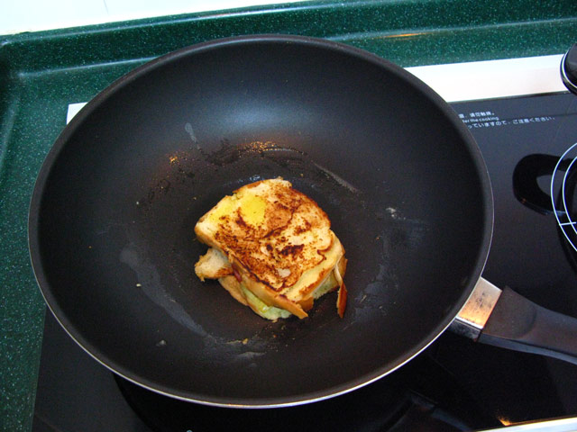 Last night was the night I decided to cook for the first time. I had finished the last of the Chuan Ren Bai Wei leftovers for lunch, so I was thinking I would fire up my newly purchased pan and cook up a grilled cheese with Canadian bacon.