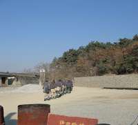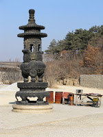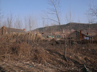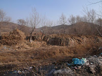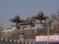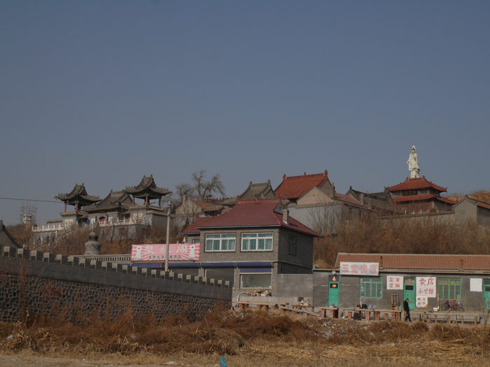 James took us down through Jinzhou to grab entry to the Shenda (Shenyang to Dalian) Expressway and another route north, this time on the other side of the peninsula. The road out of town here was different – you climbed and climbed, just like that stretch of I70 that takes you west out of Denver. No wind today, the valleys were completely choked with the smoke from heating fires. Off through the haze I could see a new to me temple on the edge of Big Black Mountain. We continued up, passing a service area just like the ones back on the New York State Thruway. Some cultural imperatives are transportable, at least from afar. We did not stop so I can’t say how close the implementation mirrored ours from close up.