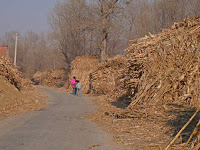 This drive pretty much took me to a new level in off the grid adventure. My trip to Chongming Island back in 2006 was one thing, this was wholly another. The road was a single lane affair that paralleled a river bottom through village after village. I’m going to guess and say we went perhaps 20 miles out into the countryside, occasionally crossing a tiny bridge from one side to the other and then back a ways down the road. Mule carts caused us to move off the pavement every few miles along with the occasional person on a motor scooter taxi, a regular bike with a small sheet metal house attached to the back with room for a single passenger. Every once in a while the road would straighten out and pass down a long line of evenly spaced trees, backlit and naked in the winter light.