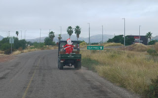 Like everything else, this road had changed dramatically since our last visit. For one thing, the pavement was continuous from side to side along the whole length of our drive. And it stretched all the way out to the little town of San Jose de Guaymas and around its little town square. Gone was the house on the big sweeping curve into town that had the water line running across the road. Gone were the muddy and rutted washes, this was civilization at its finest. On the far side of the square though, reality came back in the form of 5 miles of dusty washboard but sure enough we found our way back to the now fenced Cardons and so the circle was completed.