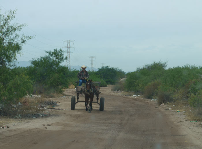 Just to close the loop we continued on past the dump to see if this was in fact our regular route in. We passed a friendly old ranchero driving to town on a buckboard pulled by a surprisingly fit looking bay horse. The road continued on through the desert, the estuary off to our left and Sonoran scrub off to the right. As we came out of a wash, our suspicion that this was “the road” was satisfied when the Cardon cactus forest came into view. We’ve been coming out here for perhaps ten years monitoring the condition and decline of this splendid spot and it’s always nice to see it. They are the largest of the North American cacti and stunning to see, big green giants soaring 20 or more feet into the air. But one thing had changed enough to make us wonder if this was the place – it was now fenced. It appears that the Mexican government finally wised up about this resource and decided to make it a bit more difficult to access. A good thing, no doubt.