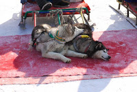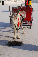 We wandered around taking it in and having a look at various animal drawn rides for hire down in front. So often in China people are making a buck inside of making a buck and that was the case here. Dog sleds pulled by pairs of Huskies were lined up, the dogs dozing on carpets in the sun. Two reindeer pulled sleds stood nearby, a pile of moss spread on the ground in front of the animal who was far more interested in sleeping than eating. No one was availing themselves of the services but everyone was stopping to take pictures and have a look.