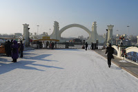 Off to the side a kiosk was selling snow boots, gloves and fake versions of those floppy Russian fur hats for those enough dense enough to come out here unprepared. For fun I had a look at one of the hats and asked the price. 150 yuan was the answer and when I walked away it immediately dropped to 120.