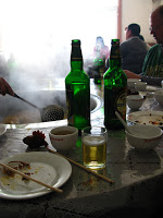 Someone lifted the lid and the driver clucked and motioned for them to put it back, lest the cooking be impeded. Beers were ordered and this brought another young woman who had been brought to explain to us in English that the beer was very expensive – $1.50 per liter bottle and that our total bill would be $9.00. We thanked her for her concern and told her we were solvent.