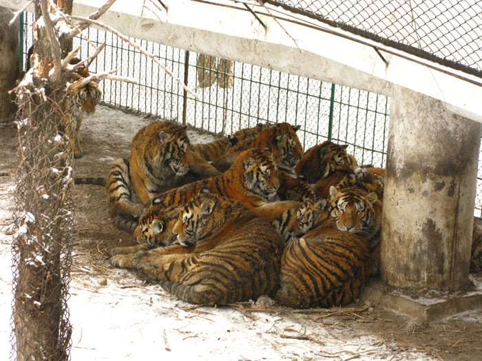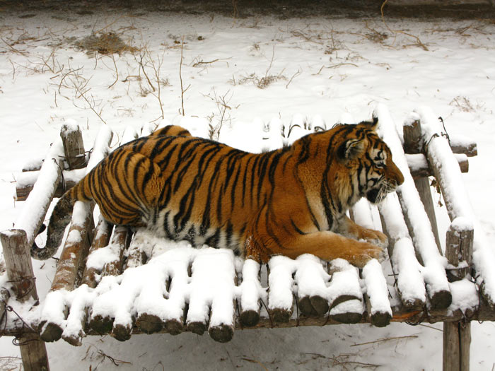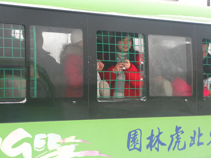 I went over and sat down and told him we wanted to go to the Siberian Tiger Park, a refuge and home to a rescue program for the Manchurian strain of the Bengal Tiger, whatever the heck that might be. He nodded his understanding and motioned me to join him at the desk. He said something to the desk clerk who translated to the effect of “You have 14 tourist points, do you want to see the Dragon Tower?” Interestingly, Dragon Tower was one of the places I had asked about yesterday and he had feigned ignorance at the time, so either he had done some research or he had overcome whatever agenda he’d been previously working to. I told the girl we would like to see the tigers and if we had time we would like to go to the tower. He met this suggestion with a furious waving of hands and arms that I think meant “The tigers are on that side of town and the tower is on the other and no way am I driving to both.” He had a point, it had snowed overnight and the roads were in a far less than ideal condition. I decided we would see the tigers and head to the airport. One of my companions overheard me and made a face; it seemed they didn’t really like airport food and they wanted to go through yet another round of “find the restaurant” when we were done with the cats. I suggested that they take over if their Chinese was superior to mine knowing that this suggestion usually shuts people right down – they don’t want to lead but they do want to reserve the right to complain about the decisions that get made on their behalf. Right about then I realized that group junkets were a thing of the past from this point forward.