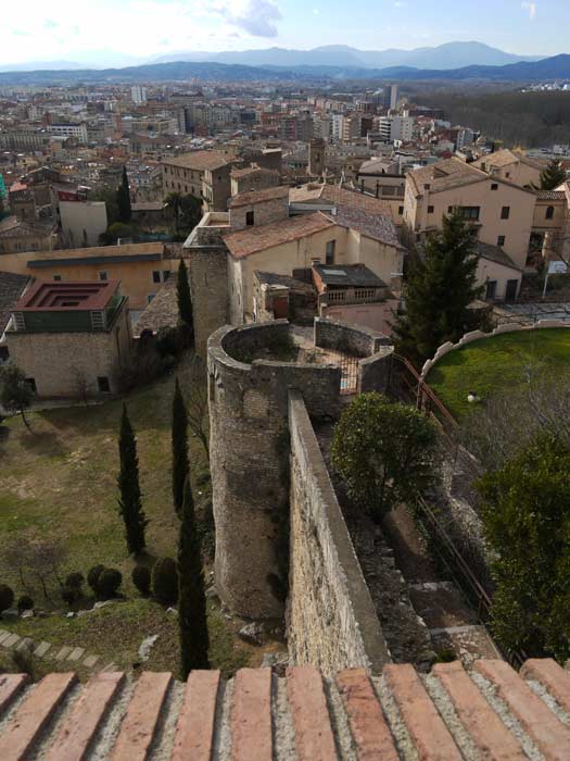 Off the back of the church, a 3 mile section of the city’s original Roman wall runs along the top of the hills overlooking the modern city. The view from here was spectacular, taking in the whole valley below and the skyline of the old quarter, the Eglesia de Sant Feliu and several Roman towers stood out against the blue sky.