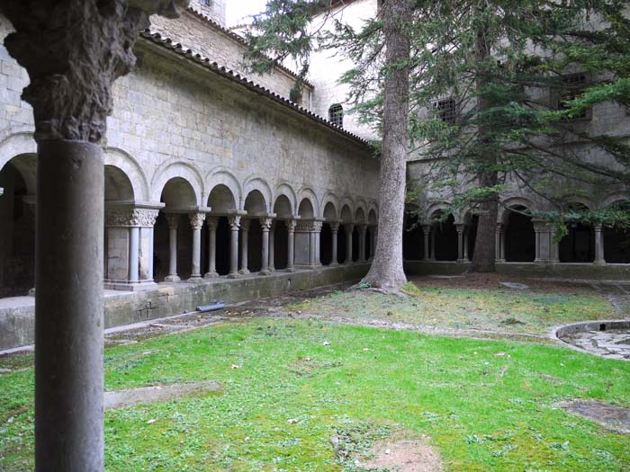 The train left Barcelona via a long tunnel finally emerging in an industrial area to the north east. The view here was like that along any train track anywhere I’ve ever been – poor neighborhoods, graffiti on every square inch of concrete, factories and a lot of trash. Eventually we cleared the edge town and continued on into the countryside and the scene outside improved greatly. Off in the distance two mountains wore a fresh crown of snow. Farms and small towns now dominated the view and we began to see more of the rural homes of the region – broad facades with a high single point and long red tile roofs sloping from the middle downwards to the sides. All built of plastered stone and whitewashed in tans and yellows.