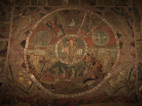 The atmosphere changed instantly – the cars were gone, as were the people going about their daily business. This quarter was mostly abandoned with a few tourists and fewer residents roaming around. We picked a street and climbed up through the ancient Call, one of the oldest and best preserved Jewish quarters in Spain. At the end of the climb the Cathedral of Girona presented itself at the top of a tall, broad expanse of stairs. We climbed them and went in taking the time to wander through a small museum featuring a wonderful collection of religious artifacts spanning ages from the 10th century to the present. In a small dark room at the back, behind thick velvet curtains designed to limit the light entering the room, was the Creation Tapestry, a relic from 1100 AD.