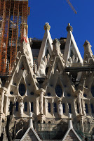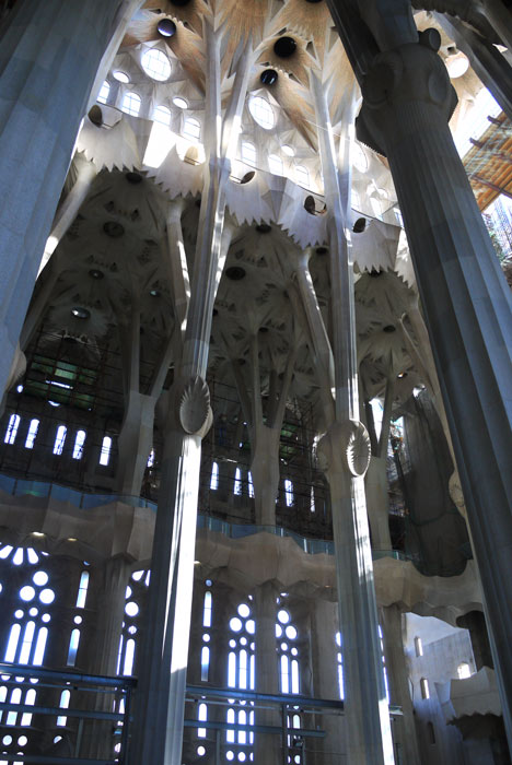 Our plan for Sunday was to take in the Sagrada Familia Cathedral, Antoni Gaudi’s masterpiece on the northern side of town. We set off on foot after a hearty breakfast of fresh orange juice, fried eggs, chorizo and French fries (!) served by a second depressed Catalan making our way across the Barri Gotic towards Passeig de Saint Joan which would take us to our destination. In one little square we came across a group of people in orange shirts trying to lead a person wearing a 20 foot tall costume of a woman in medieval dress down the narrow lanes. It apparently took some doing as the person inside the giant doll had limited vision and no ability to see above where all manner of wires and snags were impeding their forward progress.