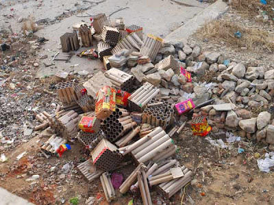 I decided to film and walk and you can see the result below. Getting past the end of the Da Shang building I could see where everything was coming from. People stood around me talking videos with their cell phones. The noise was incredible as were the lights. Now bear in mind this was no sanctioned event, just a couple of guys setting off whatever they had bought right in the street in front of a department store in the middle of the dinner time shoppers.