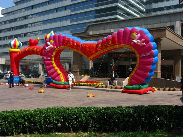 A couple of giant photographs had appeared in the lobby the night before advertising the marriage of a young couple whose reception was being held there this morning. Weddings are very extravagant affairs in China; it’s not uncommon to see a long line of black or red luxury cars, each with a red corsage tied to the drivers outside mirror winding its way down the highway. Often the procession will be led by a videographer hanging out of a truck recording the first moments of the lucky couple as they head from the ceremony to the party. I can’t imagine what it would be like to watch that in later years.