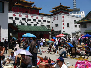 Places like this can be fun. The goods range from the ridiculous to the sublime including many reproduction porcelains sitting alongside knickknacks from the revolutionary period. As can be expected, Mao is a popular motif. A fair amount of Buddhist art is available as is a lot of moderately mild Chinese pornography; picture books of young women coyly posing in nature.