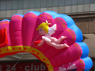 My friends collected me a half hour or so late, not a big deal because people-watching on the street out in front of my apartment is always entertaining. The specimen of the day was a young woman wearing a green camouflaged miniskirt with those stylish black stockings that start somewhere up in the forbidden zone and end at the knees. Complimenting that was a shiny gold and white satin top and matching gold high heeled shoes, all finished by a white parasol. Sometimes you just have to wonder.