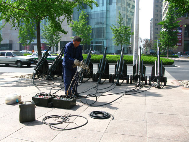 There was a wedding crew working out front when I arrived, setting up big gold faux cannons and the two obligatory inflatable red wedding arches; one of the two today was framed with giant Cupids, ready to skewer someone with an arrow d’ amour. Out by the curb, a technician was wiring up the real cannons, the ones that would shoot rockets at the buildings across the street. It’s surprising how much they resemble the launchers that Hezbollah uses to rain indignation down on Israel.
