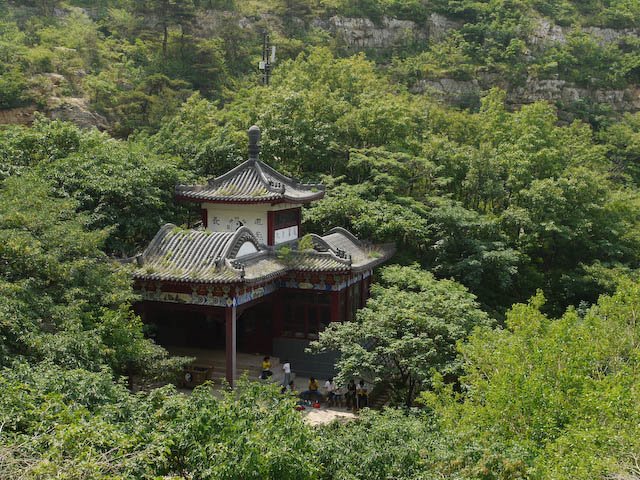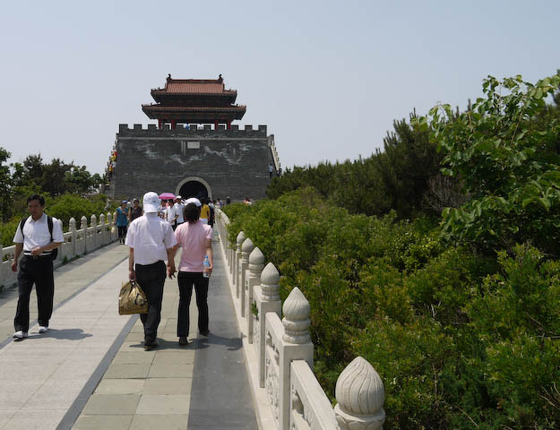 We passed a lot of Chinese tucked into little shady glens having a picnic or simply resting from the climb. While it was arduous, it was tempered by a nice breeze and a lot of shade. We climbed for 20 minutes or so, passing little faux pagodas by the side of the path and answering a constant barrage of “hello”, “how are you” and “nice to meet you” offered by the people we were passing. To listen to the English greetings, you might get the impression that these are the only things they pick up in English class. I always respond in English and follow up with Chinese that invariably gets them laughing.