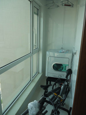 Apartment living here is a bit different than it is over there. First of all, they’re all owned by individuals, more of a co-op than a true apartment. Secondly, the builders tend to move a bunch of people in long before the building is complete in order to generate some cash flow to pay for the finishing touches. So while we’re living here, the management office consists of two card tables, a phone and three folding chairs in a roughed in room the size of a dirigible hanger. I suppose someday it will be quite impressive, today it’s quite unfinished.