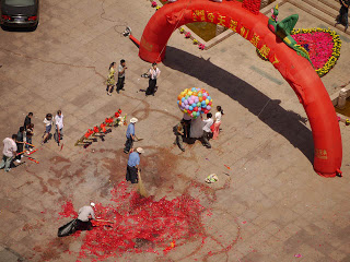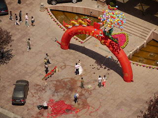 When I returned from my bike outing and recovered from my strenuous ride up the elevator I decided to call My Lovely Wife. We were having a nice catch-up conversation when all hell broke loose – a wedding across the street at the Inn Fine. The event brought to mind a story that a friend told me about being on the phone with a help desk person when some Chinese New Year’s fireworks kicked off – the help desk person was so shocked by the explosions that they asked if my friend was in a war zone. That anecdote pretty much sums it up – fireworks in China are the bane of a sane existence.