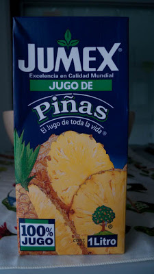Rounding a corner and about to just give up and buy a 5 liter jug of “fruit drink” I was stopped in my tracks by a strong visual whiff of familiarity – there among the boxes of Chinese juice (of which the Concord Grape is pretty darn good), was the familiar blue and yellow box label of an old and dear friend – Jumex. Not only did they have Piña and Durazno, they had Guayaba. Picking up the box of Piña, I drifted back to those silky nights on the Sea of Cortez with a jam jar full of ice, Piña and Bacardi Añejo, Toots Thielemans and his Brasilero Buddies softly playing in the background and hummingbird-sized mosquitoes beating themselves to death against the screen much to the amusement of the mewling feral cats, waiting for their nightly handout. Needless to say, that box was in my basket in a flash.