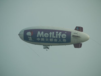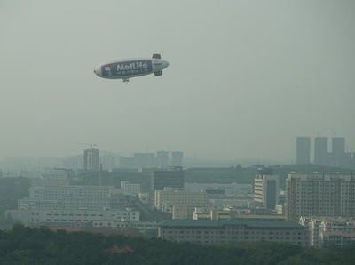 I was planning on publishing a blog tomorrow, detailing some interesting little anecdotes from the past week but this was too good to pass up. We saw this guy tethered out in the swamps a couple of weeks ago and today it flew past our office. The Dalian International Beer Festival started last night and I suspect that’s why it’s here. I came home about 4:30 and walked out of the bedroom just in time to see it fly by my living room. A few minutes later it was on the other side of my place gliding by the dining room window. And then back around again. The pilot had a very strange way of going up and down, making me wonder if he was learning how to fly the thing.