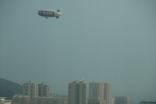 I was planning on publishing a blog tomorrow, detailing some interesting little anecdotes from the past week but this was too good to pass up. We saw this guy tethered out in the swamps a couple of weeks ago and today it flew past our office. The Dalian International Beer Festival started last night and I suspect that’s why it’s here. I came home about 4:30 and walked out of the bedroom just in time to see it fly by my living room. A few minutes later it was on the other side of my place gliding by the dining room window. And then back around again. The pilot had a very strange way of going up and down, making me wonder if he was learning how to fly the thing.