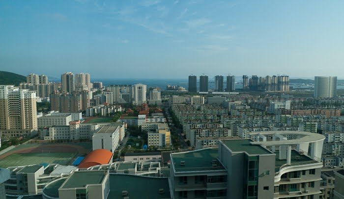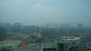 I’ve been storing up these photographs for a couple of weeks. The first set is a nice depiction of the swing in air quality that I get out my window that faces the sea. Some days it’s crystal clear, and others you can barely make out the ocean. Once last week I could literally see the horizon way out on the sea; this morning it was so foggy that I could not see the building behind me. Some days when I wake up bleary eyed I forget that much of the visibility problems I have is due to the condensation on the outside of my window.