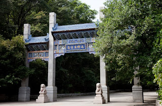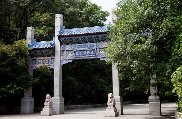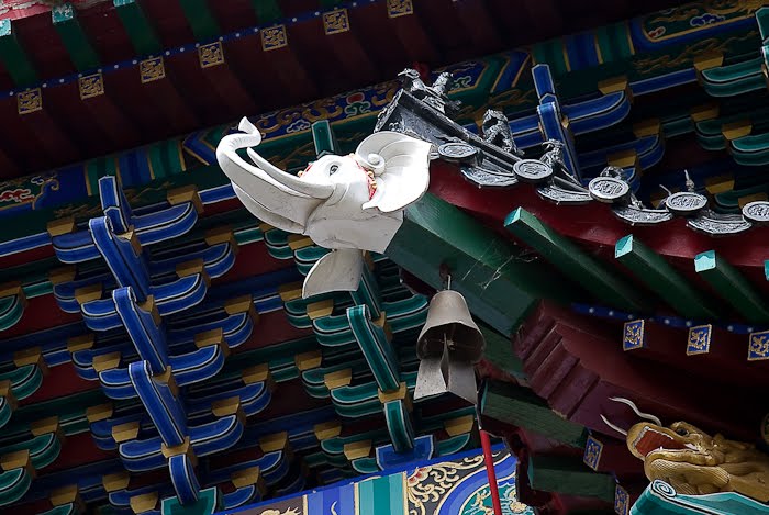 I didn’t have an actual plan for what I wanted to see, rather I figured we would simply wander around for a few hours and take in what might be close to the main road. Judging from the map many of the sites involved climbing up roads from the bottom of the valley and while I was up for that kind of activity, I am not sure that Jiang was of the same mind. While he is a wiry little fellow he is like just about every other Chinese guy, a chain smoker. I stopped here and there to take pictures of the ornate gates that span the temple roads. Their decoration was very similar to the temples I visited last year in Kyoto with intricate designs painted on every surface and carvings of animals and dragons. Very different than the architecture I am used to around Shanghai. One featured white elephants on the upper levels and golden dragons wrapped around bright red pillars. Hanzi characters painted in gold announced the name of the temple that lay up the road.