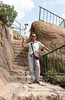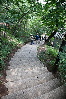 The climb down was no less scary than that coming up. We ended up in the cable car again with the same couple who had declined the opportunity to climb to the top, the young gal’s high-heeled shoes being inappropriate for that task. The sun had disappeared behind some high clouds and so the return ride was not quite so hot. We jumped out at the bottom and started the long walk back to the car, taking the time to discuss the finer points of Buddhism, Taoism and their associated symbolism and beliefs.
